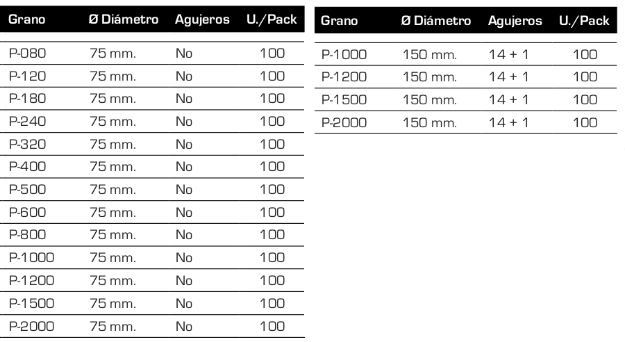DISCO DE LIJA Ø 150 MM Y Ø 75 MM