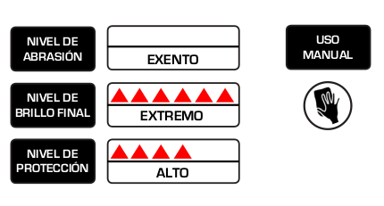 Elimina de forma fácil y rápida, hologramas y microralladuras dejando un acabado brillante final.