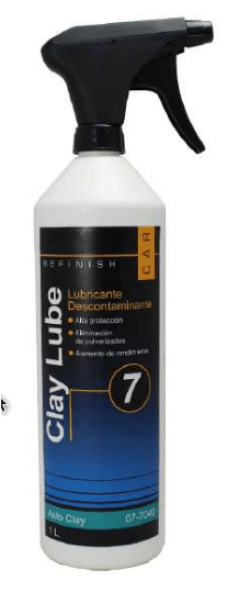- Clay Spray 1, liquido azul abrasivo para la limpieza intensiva de superficies con un nivel alto de contaminación. Paso previo al pulido y abrillantado.